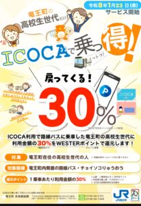 - 竜王町在住の高校生向けに ICOCAを使って乗車するとWESTERポイント30%を還元のイベント【サービス】が1月下旬から開始!!